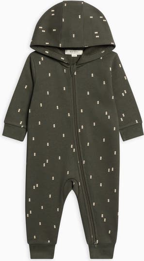 This comfy-cozy romper is a cooler temp must-have! Bonus details add to the coziness with its hood and back pocket design. Mindfully made with a front-opening two-way guarded zipper, ribbed cuffs, soft elastic leg openings, and crotch gusset for easy, hassle-free changes.