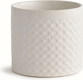This clean, white cachepot is made in traditional style. With unmistakable chinoiserie-inspired lattice details, it is sure to be an instant classic.