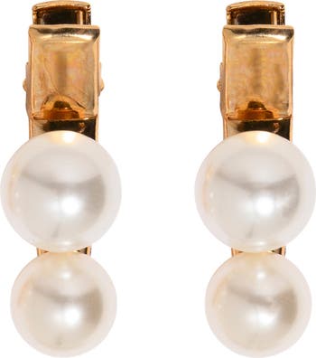 Tame your tresses with fancy hair clips that feature glossy faux pearls and 18-karat gold-plated hardware.