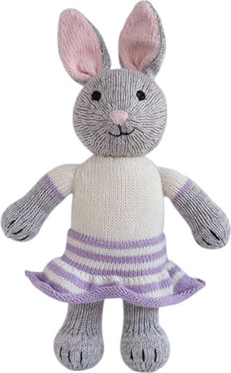 Bring storybook charm to playtime with this enchanting knit bunny toy, complete with a sweet lilac-striped skirt. Handcrafted from soft, durable yarn, it’s designed for endless cuddles and imaginative adventures. With gentle embroidered features and a pastel color palette, this delightful bunny makes a lovely keepsake or thoughtful gift for any bunny-loving child—or child at heart. Melange Collection's whimsical designs are handmade by knitting artisans in Lima and in remote rural villages in Peru.  We work closely with organizations dedicated to empowering women through income-generating projects. They enjoy a safe work environment and earn a living wage with a respect for their cultural traditions. Tags: easter, easter basket, easter décor, spring, spring décor