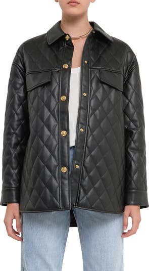 Update your outerwear rotation with this quilted faux-leather jacket featuring gleaming buttons down the placket and on the cuffs.