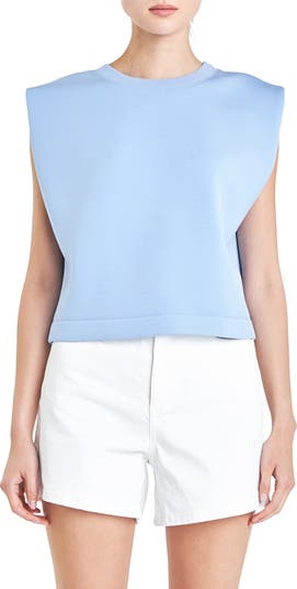 A strong-shoulder silhouette plays against the soft structure of this top that's a modern alternative to your favorite crewneck.
