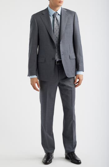Refined and smart, this charcoal-grey mélange suit tailored from premium Italian wool features a classically fitted jacket for an elegant look that can take you from business meetings to formal events. The flat-front trousers sit at the waist and complement the traditional detailing to keep the silhouette crisp and clean.