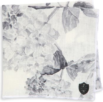 Shadowy flowers rendered in shades of grey and cream relax a pocket square that's made of American linen and styled to complement any warm-weather look. The soft fabric works especially well with textured formalwear in not-so-formal settings.