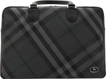 The Grid briefcase is woven in our Burberry Check with a durable, ribbed texture and lined in a nylon blend. The style features an enamelled Knight stamp, an archival motif first seen on Burberry bags in the 1980s. An adjustable webbing strap with B-cut hardware switches the design from a handheld to shoulder bag.||Rolled leather top handles|Detachable, adjustable webbing strap|Two-way zip closure|Interior zip pocket|Laptop compartment|Hand-painted edges|Brushed metal hardware|Equestrian Knight Design plaque at front|Nylon blend lining|Comes with a dust bag