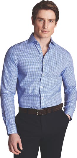 Grid Check Non-Iron Stretch Twill Slim Fit Shirt Single Cuff