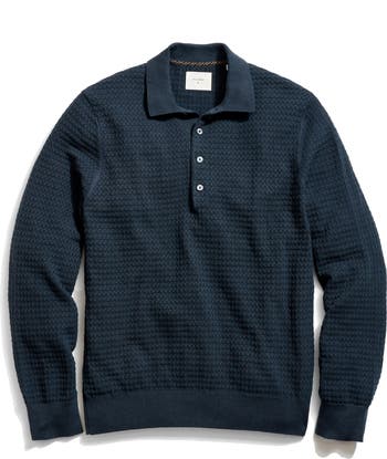 A grid of linked stitches brings subtle depth and dimension to the cotton knit of this long-sleeve polo that gives your easy-going look a note of refinement without losing out on any comfort.