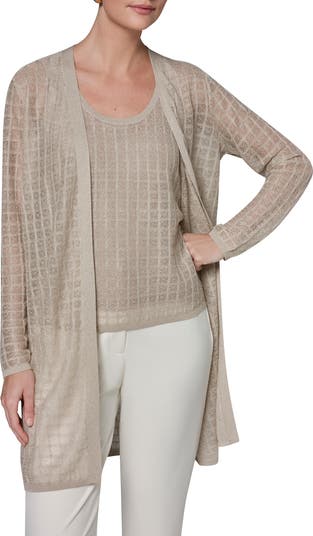 Donna Karan New York Grid Pattern Metallic Cardigan, Alternate, color, Tuscan Grey