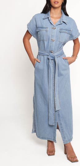 Abstract polished buttons add a touch of shine to this tie-waist shirtdress that gives your look a perfect mix of cool and casual.