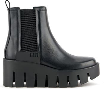 The Grip Chelsea IV is a leather and elastic pull on boot with a platform lift, a statement logo block, and a defining lug sole. This updated version introduces a raw-cut nappa leather upper and sturdier woven textile side panels.