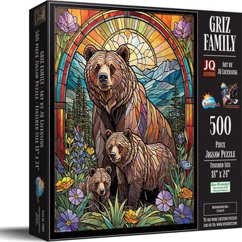 Griz Family Stained Glass Bears 500 piece Jigsaw Puzzle for Adults