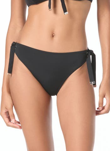 A classic solid bikini bottom is even cooler with grommet details and logo hardware on side ties. Pair this flattering bikini bottom with solid or printed tops for versatility.