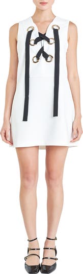 Golden grommets embolden this sleeveless mini accented with inky ties.