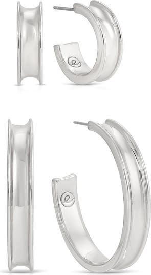 This set of subtle grooved earrings offers multiple options for creating an understated, modern look.