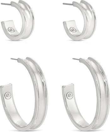 This set of subtle grooved earrings offers multiple options for creating an understated, modern look.