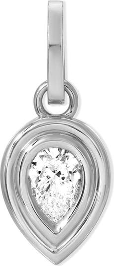 Thick grooves enhance the dimension of this pear-shaped charm centered with a sparkling diamond.