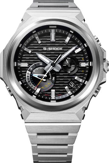 Tough, trendy and technically savvy, with a throwback designed as an homage to the very fist G-SHOCK, the original DW-5000C, this solar-charged fully analog watch features the classic octagonal case framed in brushed stainless steel. Enhanced functionality via a bluetooth® connection to your smartphone provides location data (including phone finder capability), auto time adjustments and reminders beyond what other multifunction watches typically provide.