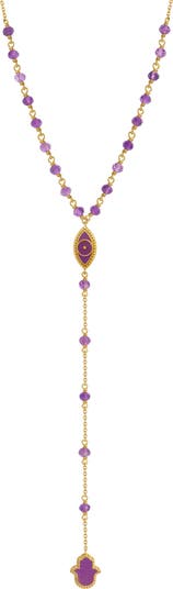 Guardian Spirit Amethyst Hamsa & Evil Eye Gold Necklace