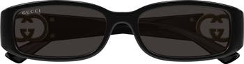Polished logo hardware enlivens the temples of these full-coverage sunglasses fashioned with slender rectangular frames.