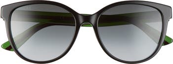 Logo hardware gleams at the temples of sophisticated cateye sunglasses fitted with smoky gradient lenses.