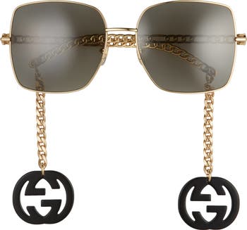 Italian-made sunglasses go glam with dangling interlocking-G logo charms that can be removed or repositioned anywhere along the goldtone chain-link temples.