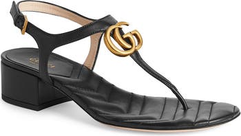 Chevron quilting at the footbed and gleaming GG hardware bring signature Gucci flourishes to a leather thong-strap sandal set on a low block heel.
