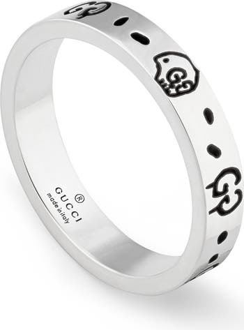 This silver ring featuring the modern GucciGhost motif is a collaborative effort with Andrew Trevor, known for his Pop Art sensibility and graffiti aesthetic.