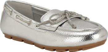The buttoned-up polish of a loafer meets the laid-back ease of a boat shoe with this traction-enhanced hybrid tied shut with glittering crystal-embellished laces.
