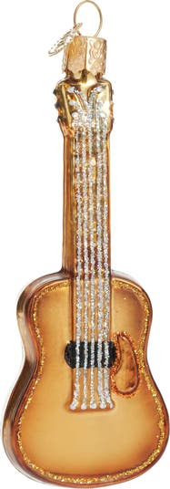 Add a glam musical touch to your decorations with this classic six-string cast from fine, mouth-blown glass and highlighted with sparkly glitter.