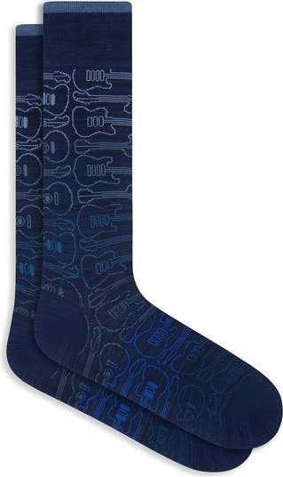 Amped up in rings of colorful guitars, these dress socks made with a touch of lightweight nylon bring the comfort and polish of mercerized cotton to all your favorite looks. Pair them with anything casual or semiformal to give your ankles a pop of personality at any occasion.