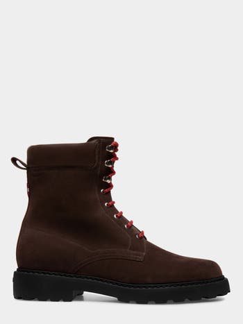 A chunky rubber sole brings a rugged aesthetic to this lace-up Gusto bootie in Ebano suede, crafted with Bally's distinct attention to detail.