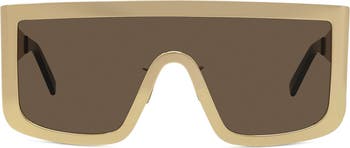 Smoky-brown lenses and graduating temples add an air of modern glam to these shield-inspired sunglasses that keep you looking confident every sun-filled day.