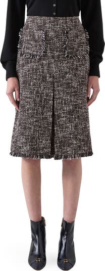 A frayed trim brings movement and texture to this classic knee-length skirt in workday tweed.
