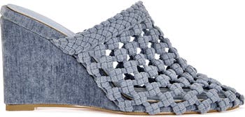 Easy breezy. Knit crochet point-toe wedge mule-breezy, stylish, and perfect for cooler summer nights or transitional weather.Heel height: 3"
