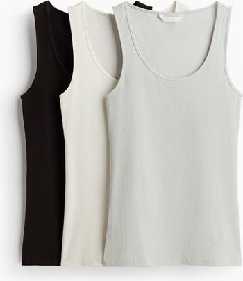 Fitted vest tops in ribbed jersey with a scoop neckline.