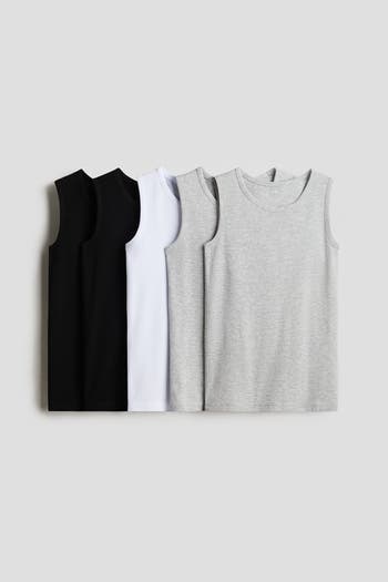 Vest tops in soft cotton jersey with ribbing around the neckline and armholes.