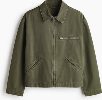 Jacket in a cotton weave featuring a collar, zip down the front, a zipped chest pocket and jetted side pockets. Long sleeves and a straight-cut hem. Unlined.