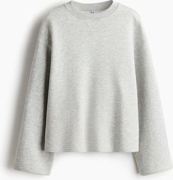 Oversized top in sweatshirt fabric with a soft brushed inside and flatlock seams. Ribbed crew neck, dropped shoulders and long sleeves.