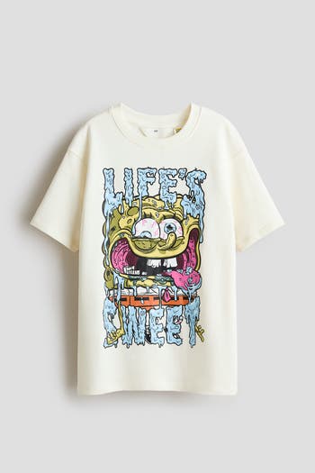 Loose-fit T-shirt in lightweight sweatshirt fabric with a printed design. Round, ribbed neck and dropped shoulders.