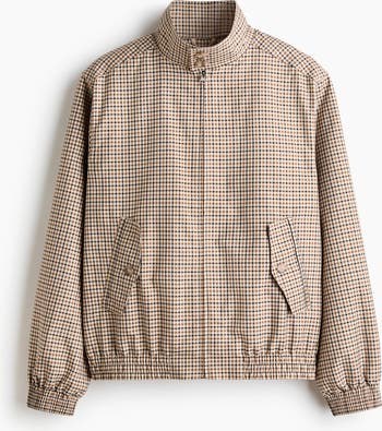 Jacket in twill made from a cotton blend featuring a stand collar with buttons and a concealed zip down the front. Diagonal side pockets with a flap and button, and smocked elastication at the cuffs and hem. Lined.