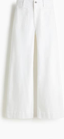 Jeans in cotton denim with a slight stretch for good comfort. Wide leg with a regular fit from the waist to the hip and a wide cut from the thigh to the hem. High waist with a zip fly and button. Patch pockets on the front and back. Regular length, designed to hit the top of the foot with little or no stacking. A denim statement that goes the distance.