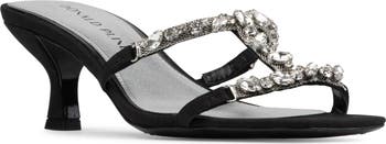 Sparkling crystals highlight the strappy design of a glamorous sandal complete with comfort-enhancing memory foam cushioning.