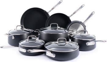 Level up your performance in the kitchen with this set of professional-level cookware that is nonstick and designed for easy cooking and even easier clean up.
