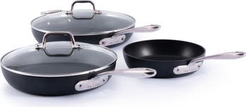 Level up your performance in the kitchen with this set of professional-level cookware that is nonstick and designed for easy cooking and even easier clean up.