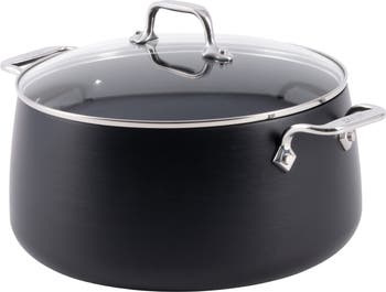 The All-Clad nonstick stockpot with a convenient lid is perfect for batch cooking, boiling, blanching, braising and soup making.