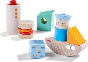 Set sail on a journey of creativity and discovery with the Discovery Wooden Building Blocks Boat Set! Perfectly crafted for young sailors and little architects, this 7-piece wooden block set offers endless possibilities for imaginative play and skill development. Ideal as stacking blocks for toddlers, these wooden blocks encourage children to build their own uniquely shaped ships, letting their creativity take the helm as they explore new horizons with every play session. Made in Germany from sustainably sourced wood, this nautical-themed block set exemplifies the quality and craftsmanship HABA is known for. Each block is thoughtfully designed with unique optical and auditory effects, enhancing sensory play and engaging young minds. Whether it's the gentle sound of a rattle or the bright colors that capture attention, these blocks offer a multi-sensory experience that goes beyond ordinary building toys for toddlers. The Discovery Wooden Building Blocks Boat Set promotes fine motor skills and hand-eye coordination. Each block in the set features captivating details, such as rattles, mirrors, or other sensory elements, which provide visual and auditory stimulation. This not only keeps children engaged but also enhances their sensory processing skills. This 7-piece set is compatible with other HABA wooden building blocks and toddler building block collections, allowing for expanded play possibilities. Whether used alone or with other sets, these wooden toddler toys offer endless construction options, making them a versatile addition to any playroom. Perfect for kids ages 2 and up, the Discovery Wooden Building Blocks Boat Set is an excellent choice for those seeking high-quality wooden building blocks, bloques para niños, or stacking blocks for toddlers. Whether as a gift or an addition to your child's collection, these wood blocks for toddlers are sure to inspire endless hours of joyful play.