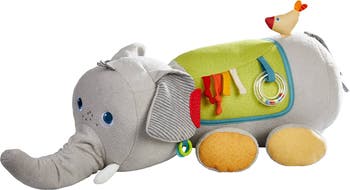 Introducing the HABA Elephant Sensory Plush Toy, the perfect companion for your little one's tummy time adventures! This adorable plush elephant is not just a toy, but a sensory experience for babies 6 months and up. With crinkle sounds, teething features, and a reflective mirror for exploration, this lovey offers hours of interactive play. Featuring a built-in plastic teether, this baby lovey is a teething friend for your little one, soothing gums and promoting healthy development. The various textures and rattling rings provide tactile stimulation and engaging play during tummy time. The Discovery Elephant is not only a playmate but also a cuddly companion for snuggles and exploration. The HABA Elephant Sensory Plush Toy is designed to stimulate your baby's senses, with embroidered details and a mix of sounds and textures for endless fun. It's the perfect gift for baby showers, birthdays, or just because! Give your little one the gift of plush comfort and sensory exploration with this adorable Elephant Sensory Plush Toy from HABA. Make learning fun and interactive with this lovey that encourages tactile play and sensory development. Order now and watch your baby light up with joy!