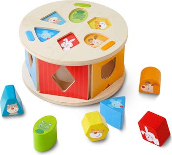 - Every favorite animal has a place in this beautifully-crafted fun and colorful wooden sorting box and puzzle. Little ones can experiment and learn all about shapes, sizes, and colors while trying to fit the individual wooden shapes into the right shaped slot on the sides of the sorting box.