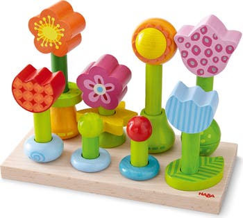 Introduce your child to nature with the HABA Flower Garden Wooden Sorting and Stacking Game. This charming peg game lets young gardeners create their own colorful flower garden on a durable beechwood peg board, exploring creativity and developing essential skills. Perfect for children ages 18 months and up, this game encourages early development while bringing the beauty of spring into playtime year-round. Kids can design small buds, bright flowers, and leafy stems in countless combinations. They'll enjoy experimenting with different arrangements, crafting vibrant floral masterpieces unique to their imagination. Made from sustainably sourced beechwood, the Flower Garden set meets high standards of quality and safety. Treated with non-toxic, water-based stains and a clear protective lacquer, the pieces are safe, durable, and gentle on little hands. Includes Everything for Floral Fun 16 Pegs: Serve as the foundation for building. 16 Rings in 8 Colors: Add colorful petals, leaves, and more. Wooden Pegging Board: Provides a stable base for play. Supports Skill Development This toddler educational toys game enhances fine motor skills, hand-eye coordination, creativity, problem-solving, and color recognition as children arrange their gardens. Made in Germany Crafted from PEFC-certified sustainable beechwood, this toy reflects HABA's commitment to quality, sustainability, and exceptional craftsmanship. Versatile Play Great for solo or cooperative play, the toddler Montessori Game offers a new way to play each time, making it a fantastic addition to playrooms, classrooms, and early learning environments.