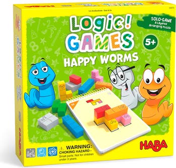Welcome to the world of Freddy Woodworm and his colorful friends! Introducing the HABA Happy Worms Logic Game, a brain-teasing puzzle game perfect for kids 5 years and up. With 60 levels of logic challenges, this wooden game is the ideal addition to your family game night. Engage in playful learning with 14 vibrant wooden worms that challenge kids to match them to fun and colorful card templates. Watch as your child's spatial awareness and fine motor skills improve while having a blast with this entertaining game. Challenge your brain with increasing levels of difficulty that are perfect for both kids and adults. Develop critical thinking skills as you tackle each new puzzle and experience the satisfaction of finding the perfect solution. Crafted in Germany using sustainably sourced beech wood, this high-quality puzzle game is environmentally friendly, durable, and safe for endless hours of play. Invest in a game that is both fun and eco-conscious, making it a perfect gift idea for parents, grandparents, or any gift shopper. Elevate your family game night with the HABA Happy Worms Logic Game and create lasting memories while sharpening your logical thinking skills together. Don't miss out on the opportunity to give the gift of learning, problem-solving, and family bonding with this engaging brain teaser. Get ready for hours of fun with Freddy Woodworm and his colorful crew!